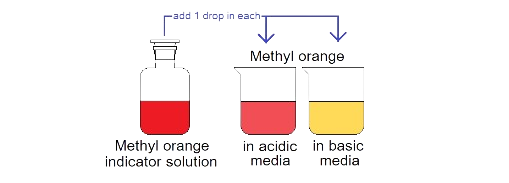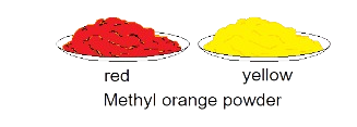 Methyl orange is an organic compound that is used in acid-base titration. It shows different colours in acidic and basic media; it is yellow in basic but red in acidic medium. This is the reason why methyl orange is used as indicator in volumetric analysis.