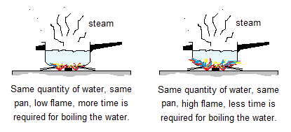 4. Changing the Temperature of the System: Rise in temperature increases the kinetic energies of the particles, causing the increase in frequency of collision per unit time. Thus, resultantly, the rate of chemical reaction also increases. It is a general observation that water boils slow when placed on low flame; while boils quickly if the flame of the stove is turned up.