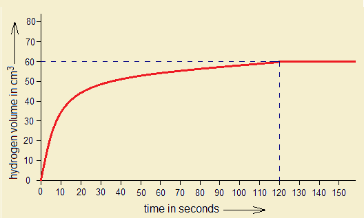 1. By the following graph, if 60 cm3 hydrogen gas is produced in 120 seconds, (1) calculate the amount of Mg consumed in grams. (2) If HCl is 1 molar, then, for 60 cm3 H2 production, the required amount of Mg will react with how many grams and moles of HCl to that time?