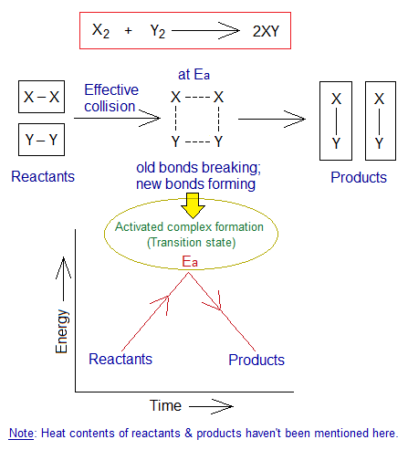 Energy of Activation (Ea): The Ea is an energy barrier, a higher energy state called transition energy where old bonds break and new are formed; in other words, reactants are going to be changed into products. So, an activated complex is formed at this stage. Detailed discussion is given in the link https://chemiologist.com/chemical-energetics/