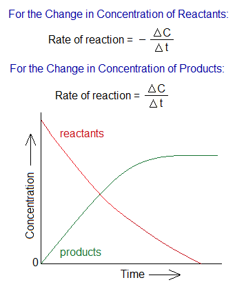 If C is the concentration of the reactants or products, ∆t is the change of time, then, it would be expressed mathematically as:
