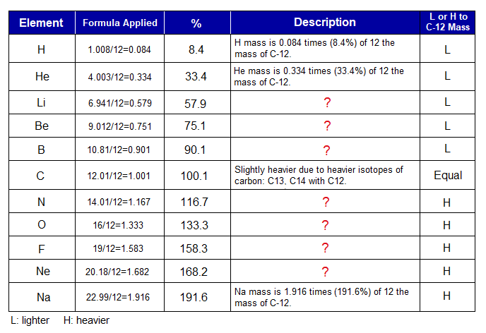 Relevance of atomic masses of various elements with C-12 is as under: