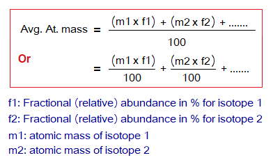 It is defined as“the arithmetic average of masses of all the naturally occurring isotopes of an element with respect to percentages of their relative abundances” is called average atomic mass of an element. For calculation, the relative abundance of an isotope is multiplied by its atomic mass; so is the mathematical procedure for all isotopes of that element. Then, the answers are sum up and divided by 100 to get average atomic mass of the element. The relative abundance is a percentage number; so, the value is divided to get decimal or fractional value to normalize the number. In other words, the value in 100 parts is converted into 1 part.