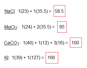 Like, covalent molecules, the Mr is calculated on the same pattern but is called relative formula mass of ionic compounds. Few examples are given below: