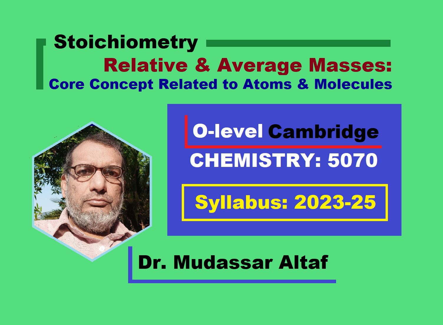 Dr. Mudassar Altaf, Associate Professor of Chemistry, Department of Higher Education, Government of the Punjab, Pakistan