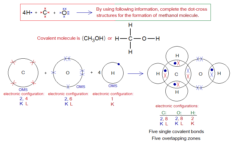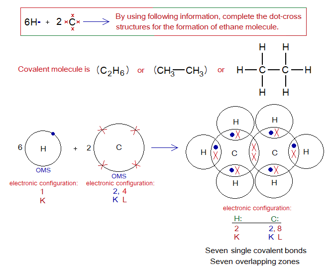 - Diagram: Dot and cross diagram of covalent sharing in CH4 shown below without and with shells.
