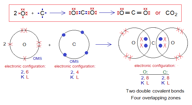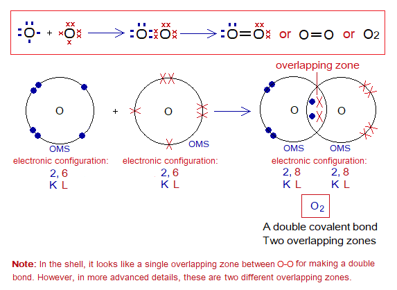 - OMS of O-atom: L-shellhaving 6 electrons, and needs 2 more to pair up and attaining neon electronic configuration of 10 electrons.