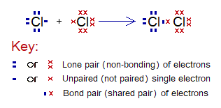 - Diagram: Dot and cross diagram of covalent sharing in Cl2 shown below without and with shells.