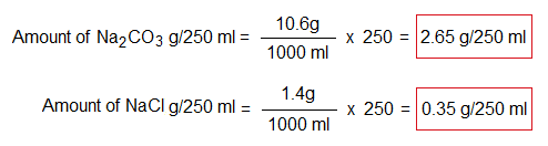 - Also find out amounts Na2CO3 and NaCl in 250 cm3 of solution.