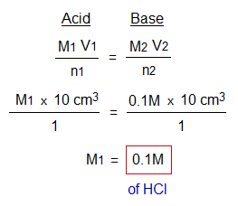 Result: The concentration of HCl is 0.1M or 3.65 g/litre in terms of molarity or strength (amount) respectively.
