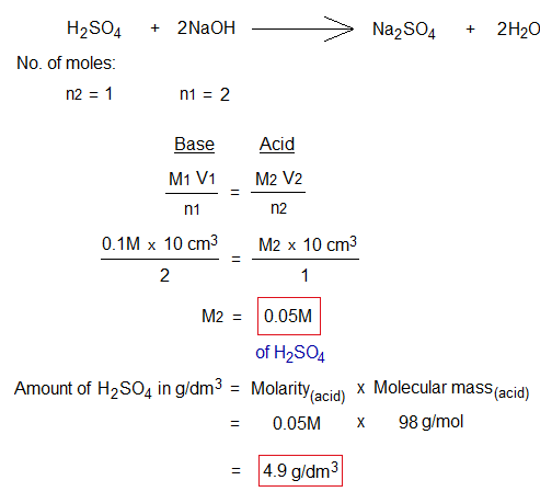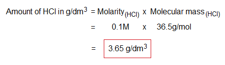 Further, after determining molarity, it is easy to find out amount (or strength) g/dm3.