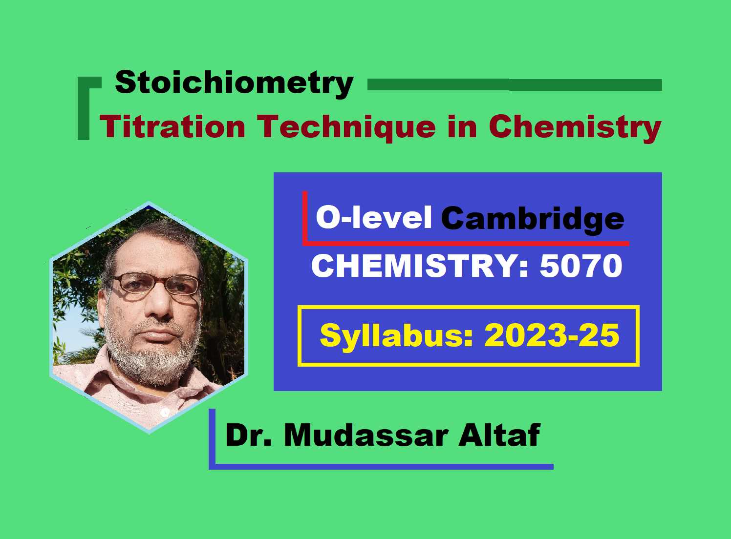 Dr. Mudassar Altaf, Associate Professor of Chemistry, Department of Higher Education, Government of the Punjab, Pakistan